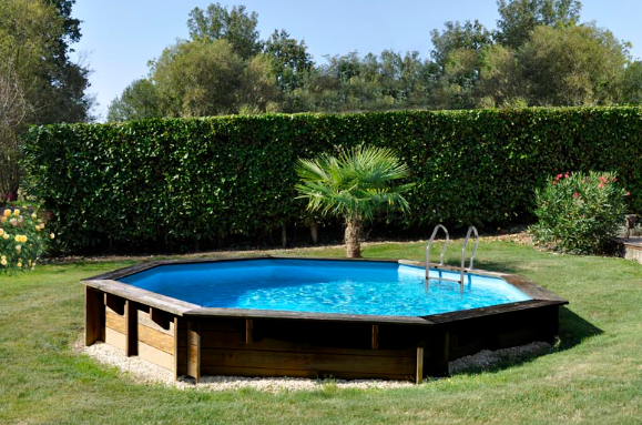 - Piscina de madera octagonal fabricada en Francia en pino silvestre Francés