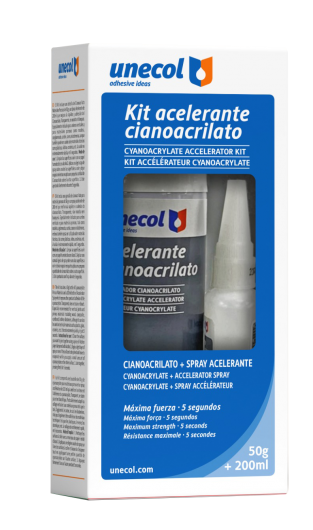 KIT ACELERANTE CIANOCRILATO 50G+200ML UNECOL, Img 1