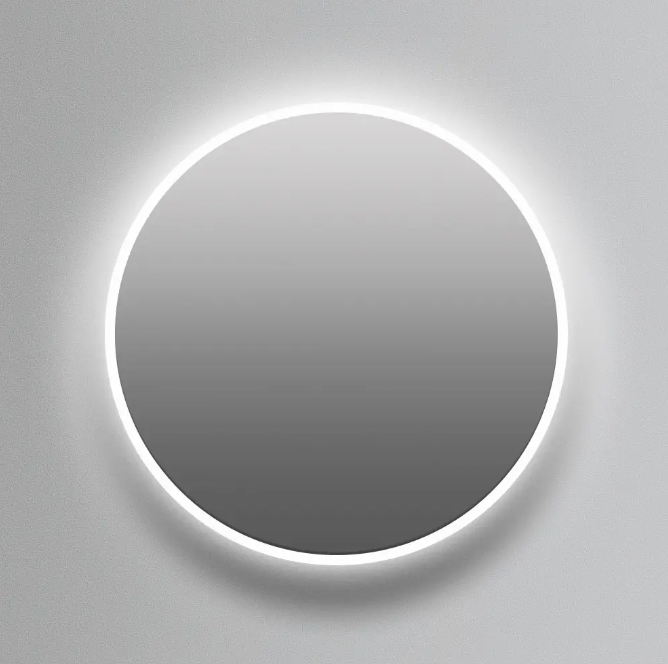 iva incl.Espejo redondo, contorno arenado y luz fría.
