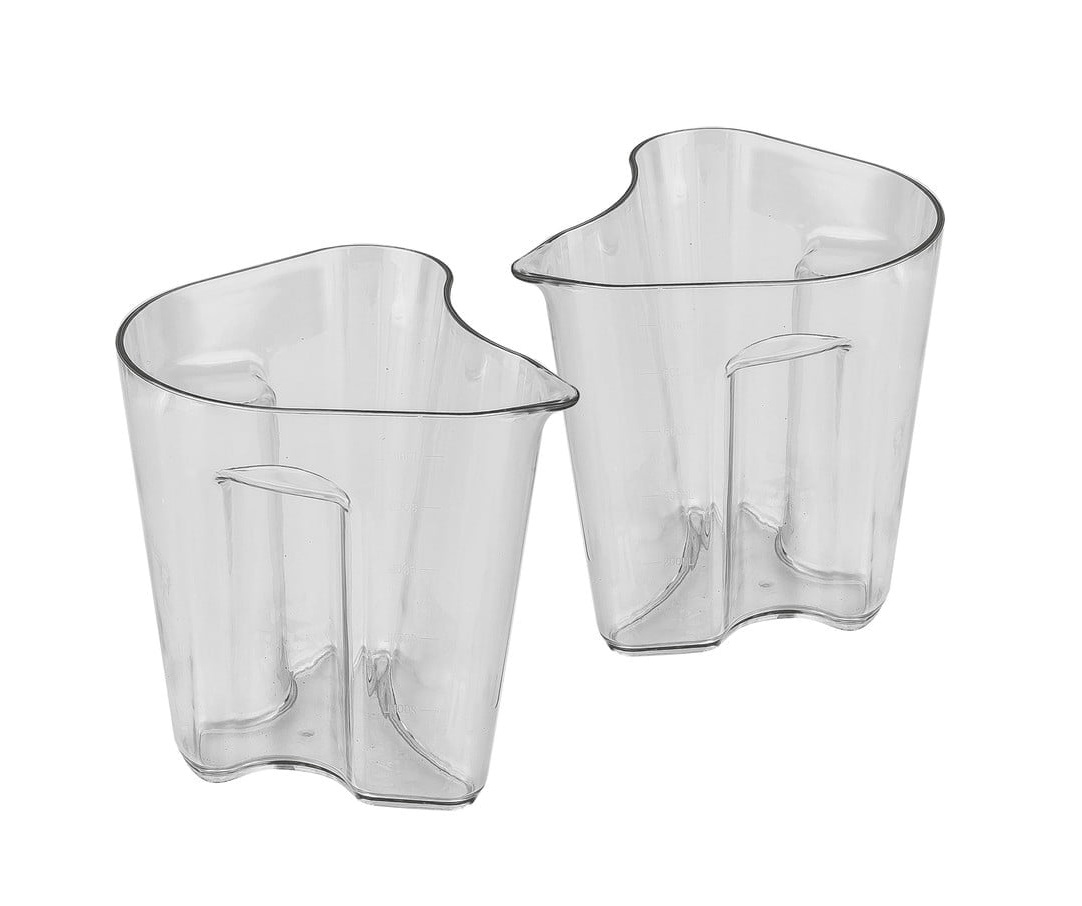 Recipiente prensador/separador en PC transparente con 2 canales de salida, uno para zumo y otro para pulpa.