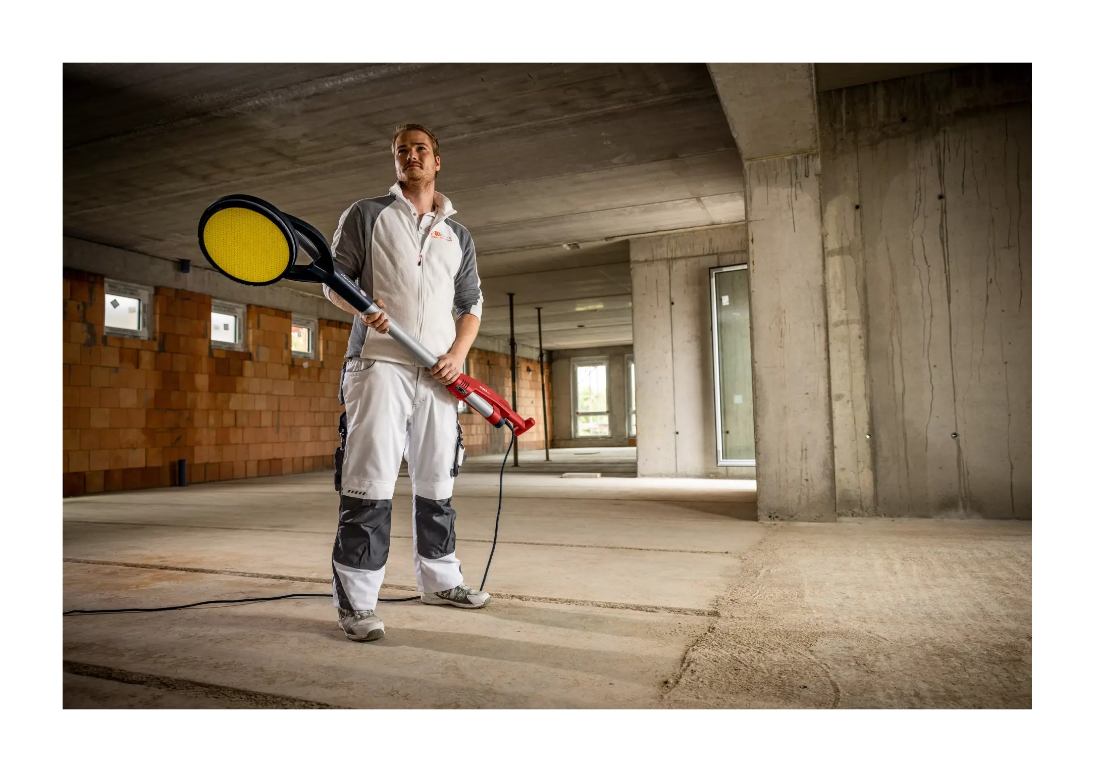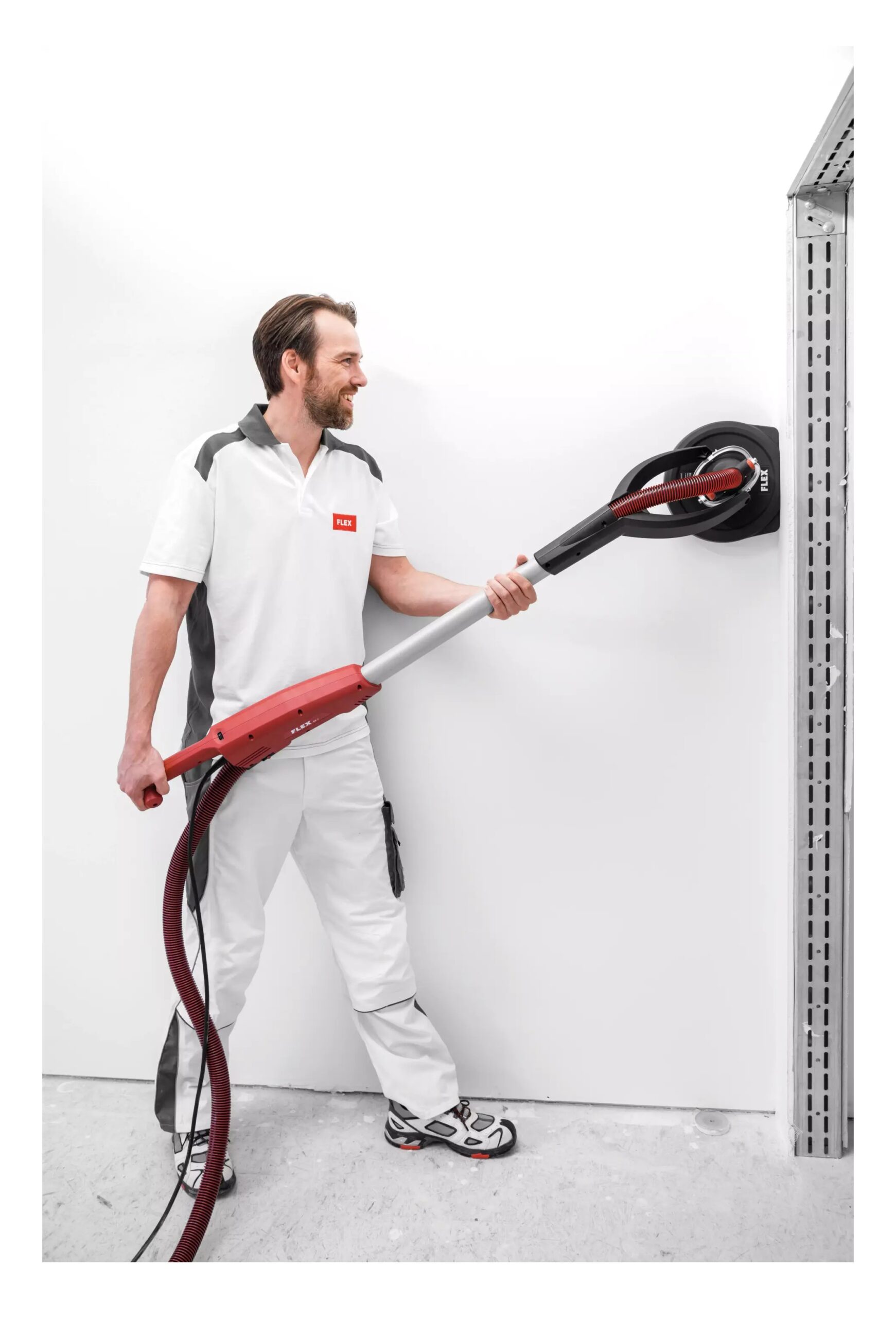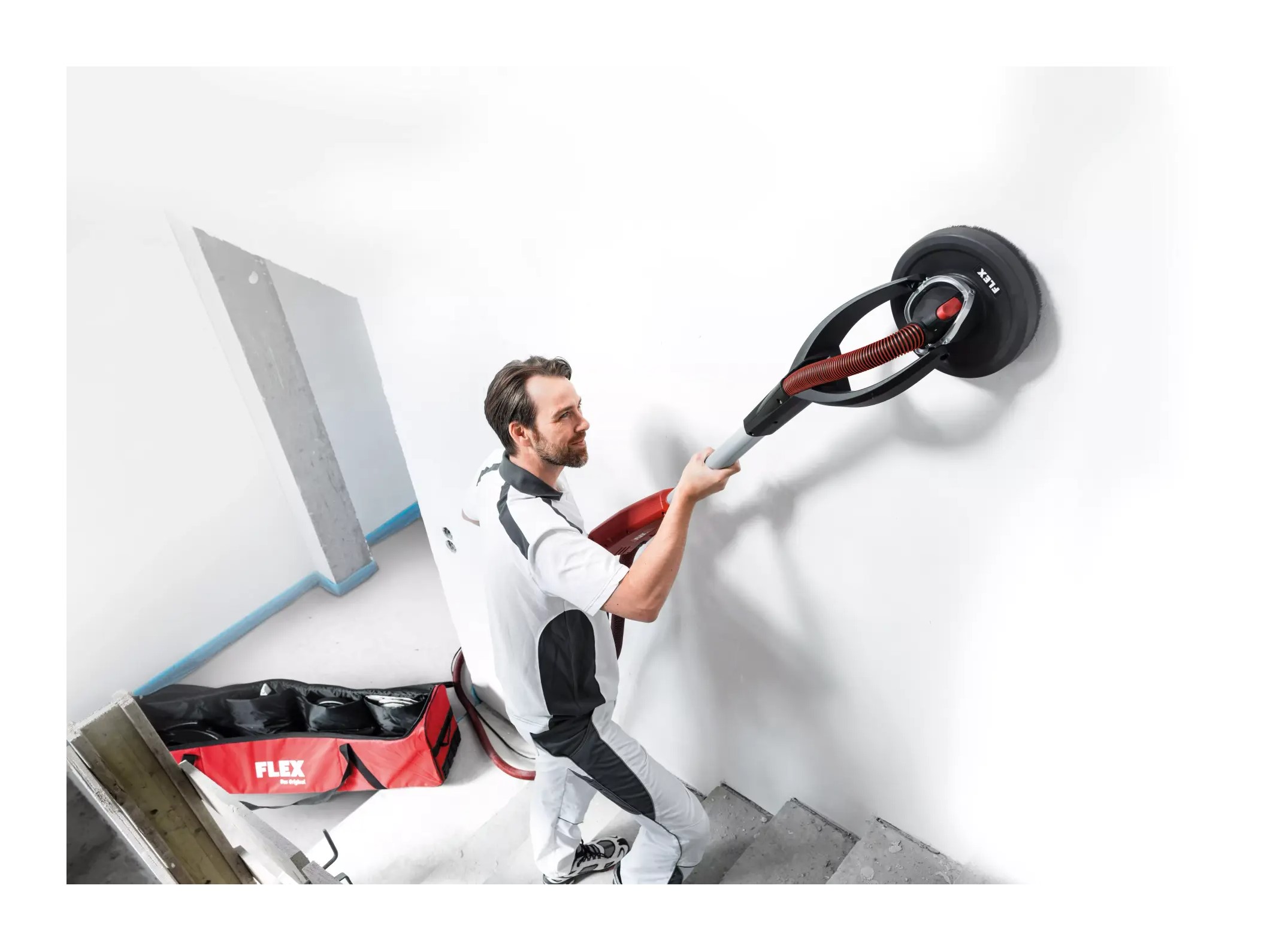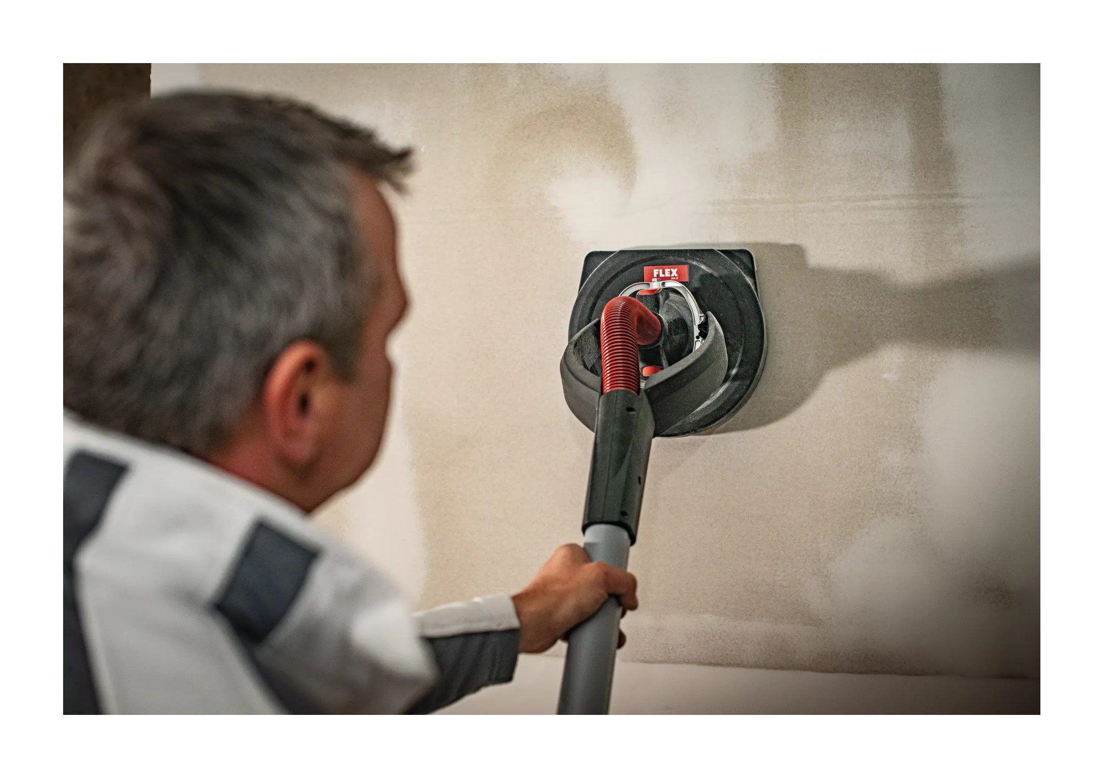 El cabezal lijador con rodamiento cardánico, causa una alta flexibilidad y una adaptación óptima durante el lijado en paredes y cielos rasos.