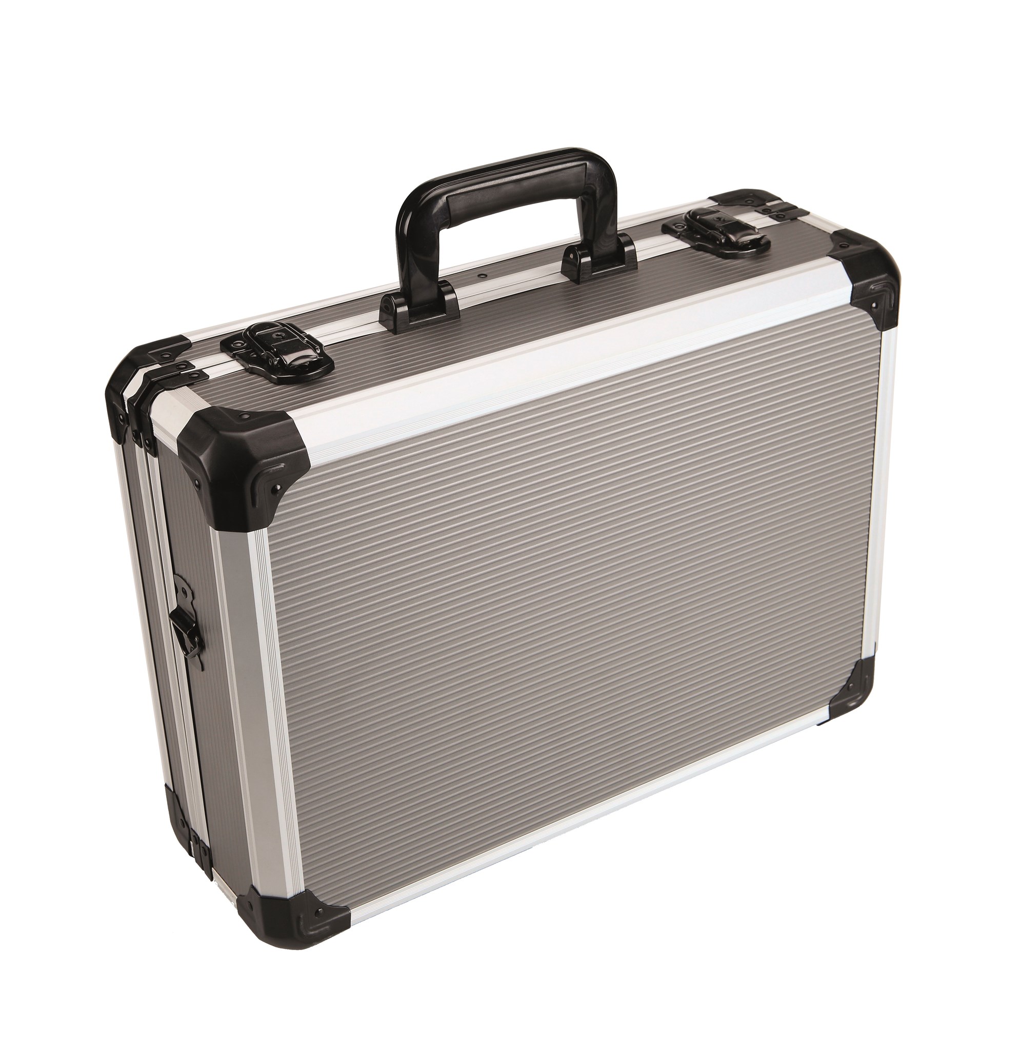 Maleta ligera y compacta para transporte y almacenamiento de herramientas. maleta Organización por el panel interior que permite fijar muchas herramientas y separar en dos la maleta. Cómoda por poderse llevar por el mango y por la bandolera. Larga vida útil por los materiales usados y el diseño de fabricación. Segura por el doble sistema de cerradura por llave. Maleta ligera para transporte de herramientas, documentos, ordenador, etc. Muy útil para personal de mantenimiento, montaje de maquinaria en el exterior, bricolador, etc. Maleta fabricada con paneles ligeros de aluminio, con refuerzos en los cantos para evitar roturas y golpes a lo que esta guardado en su interior. Con doble cerradura con llaves para evitar la apertura por otras personas. Con asa para transporte en la mano (peso máximo recomendado 15 kg.).El interior tiene 1 panel extraible con multitud de alojamientos y elásticos para herramientas de todo tipo (alicates, llaves fijas, destornilladores, etc.). Este panel se puede fijar por un pestillo. Al exterior tiene una correa y fijaciones para usar como bandolera. El volumen exterior es de 45x33x15 cm.