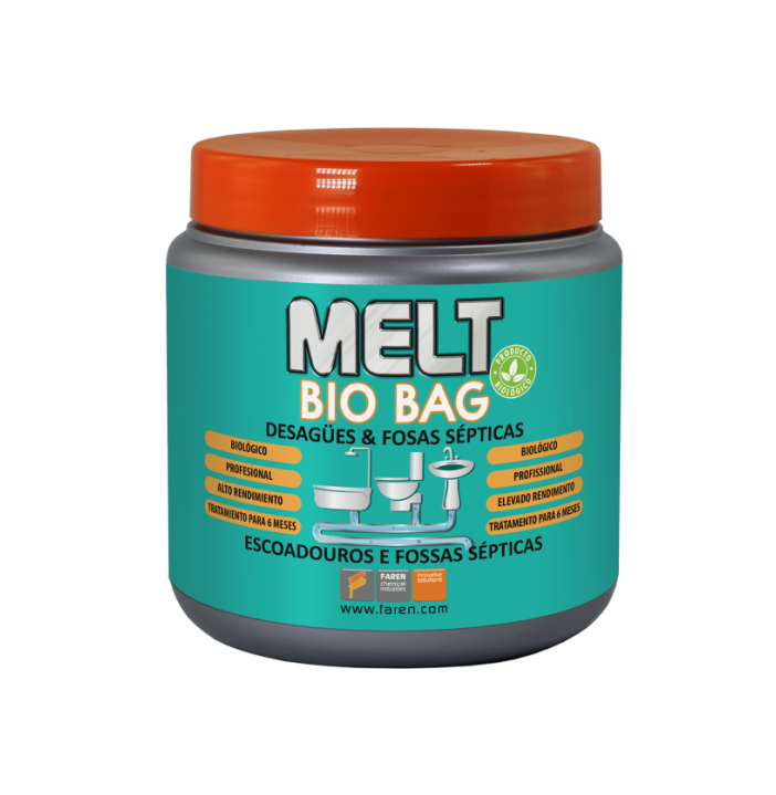 iva incl.MELT BIO BAG es un producto BIOLÓGICO en sobres hidrosolubles de alta concentración y rendimiento. Elimina de forma natural residuos animales, vegetales, grasas, etc.