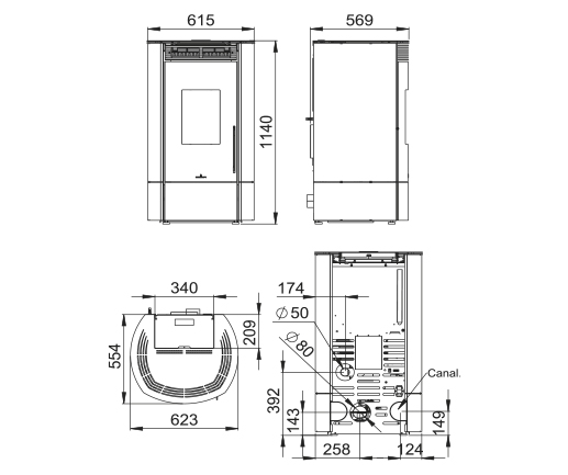 MILA ESTUFA DE PELLETS 11 KW MARFIL (CANALIZABLE)