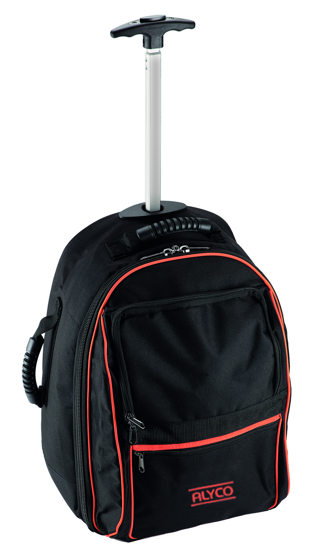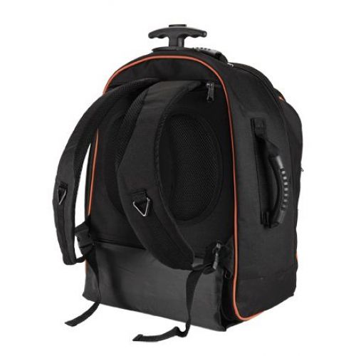 Mochila para transporte de herramientas, sea como carro trolley con 2 ruedas y asa telescópica, o como mochila para la espalda con dos cómodas bandas. La mochila esta fabricada en polyester y está cuidadosamente cosida. Las bandas de la mochila están reforzadas, y son ergonómicas. Al usar como mochila tiene unas almohadillas en la espalda para evitar daño y fatiga en la espalda. También se puede transportar cogiendo por las 3 asas superior o laterales. El mango de trolley es abatible con tres posiciones. La cremallera es posible de cerrar y bloquear con un candado. Tiene muchos compartimentos exteriores e interiores para transportar herramientas. Pueden usarse como maleta de cabina en la mayoría de las aerolíneas (no llevar elementos metálicos en ese caso). Dimensiones: 370x230x540 mm.
