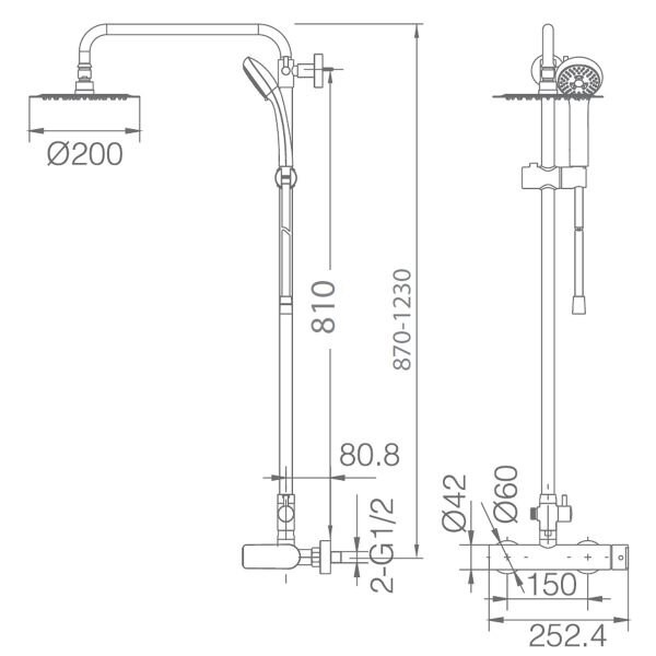 Barra de ducha extensible de acero inox. S304 extensible 87/130cm.