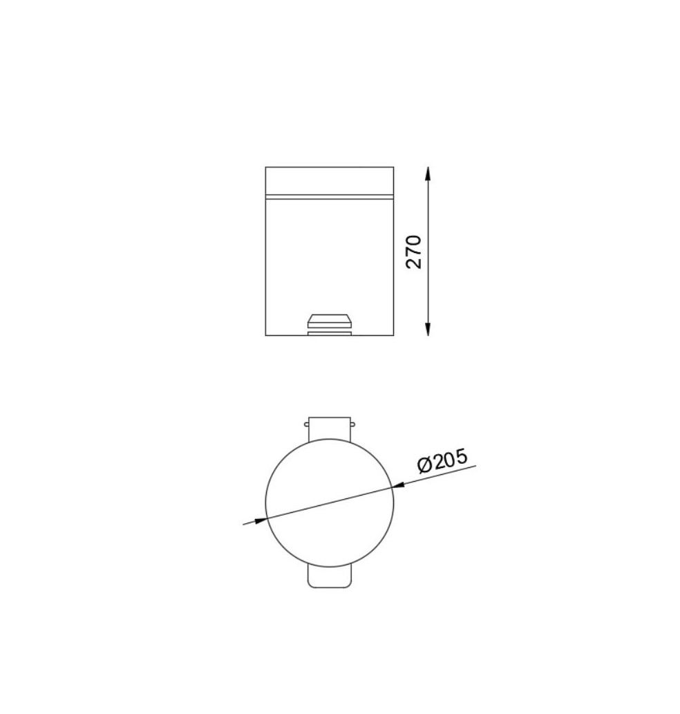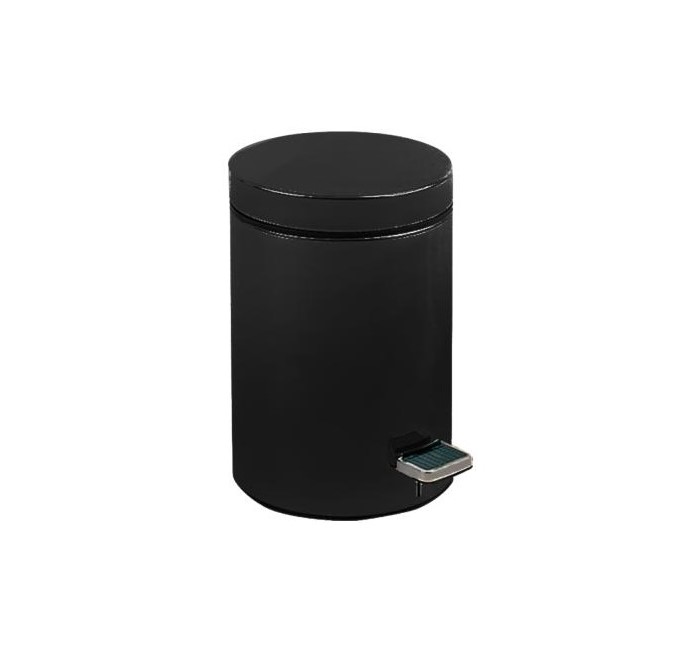 Papelera cuerpo de acero inox. Cubeta interior de plástico negro con asa. Tapa accionada con pedal. Capacidad 5 Litros. Acabado negro. Medidas: Diámetro 20,5 cm x Altura 27 cm.