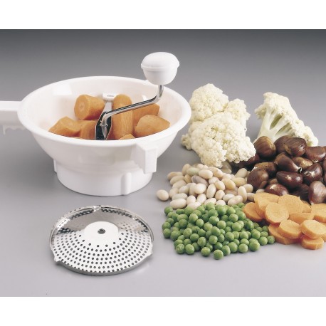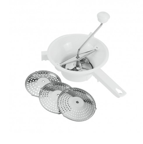 Disfruta de purés perfectos con el pasapurés Spring de Metaltex, equipado con 3 discos intercambiables de acero inoxidable que te permiten ajustar la textura de tus preparaciones a tu gusto. Este utensilio es ideal para crear purés suaves de frutas, verduras y hortalizas, ofreciendo siempre una consistencia cremosa y homogénea. Su cuerpo está fabricado en PP (polipropileno), un material resistente y fácil de limpiar, pensado para facilitarte el trabajo en la cocina.