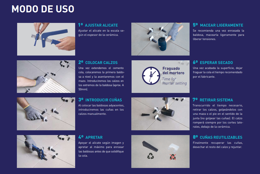 - Evita los movimientos de las piezas durante el proceso de fraguado del mortero.