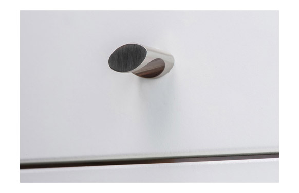 Pomo fabricado en zamak, acabado niquel satinado. Medidas: 17x11 mm. Ref.: 7-719.22