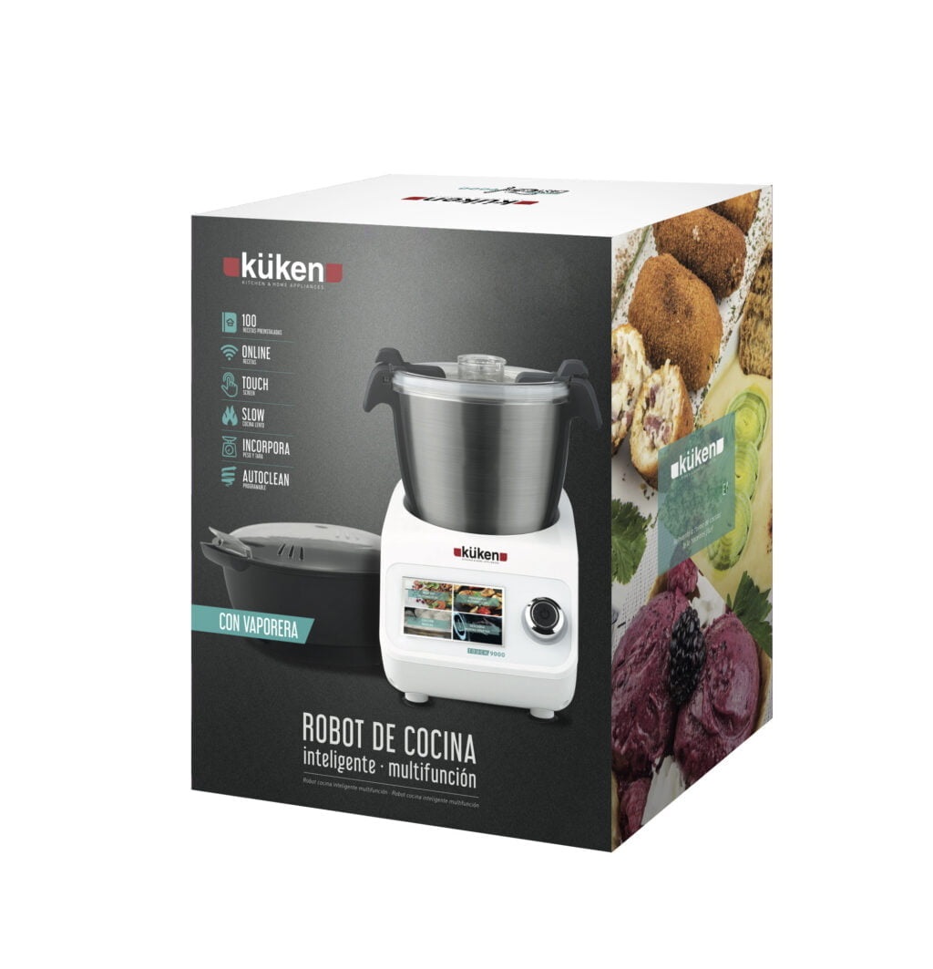 El Robot de cocina KüKen TOUCH 9000 es un versátil robot multifunción de la reconocida marca KüKen. Con sus 12 funciones, este increíble robot te permite realizar una amplia variedad de tareas culinarias de manera sencilla: picar, pesar, amasar, batir, mezclar, fundir, emulsionar, montar, moler, calentar sin cocer, fuego lento y cocinar al vapor. Sin duda, se convertirá en tu gran aliado en la cocina.