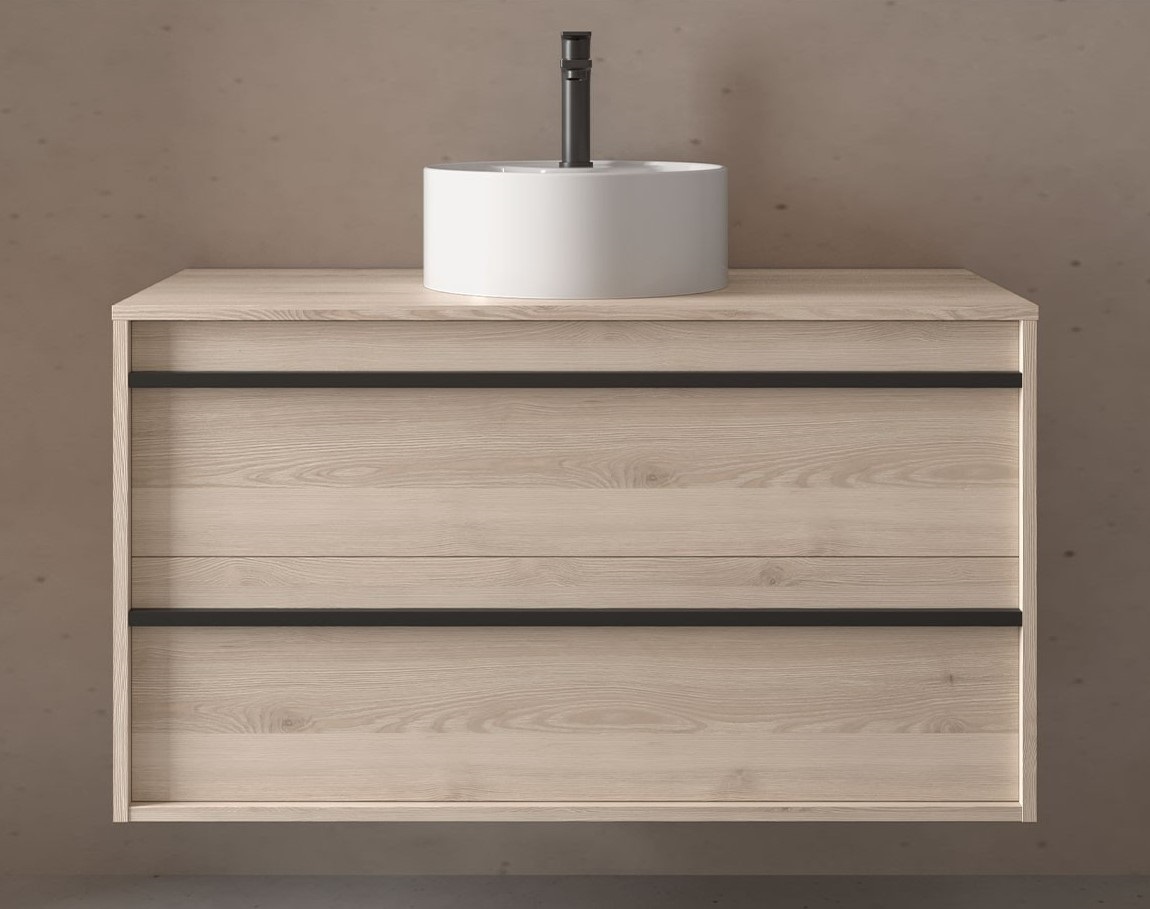 El conjunto de mueble de baño está formado por el mueble de baño y una encimera en el mismo acabado del mueble.