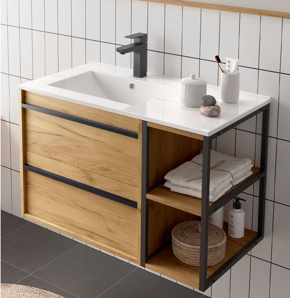 SALGAR ATTILA BAJO 2C + COQUETA CON LAVABO DESPLAZADO IZDA ROBLE AFRICA 85 CM