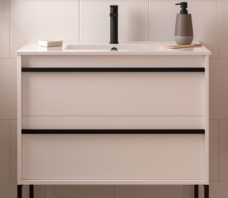 Los muebles de baño ATTILA destacan por su característico tirador negro.