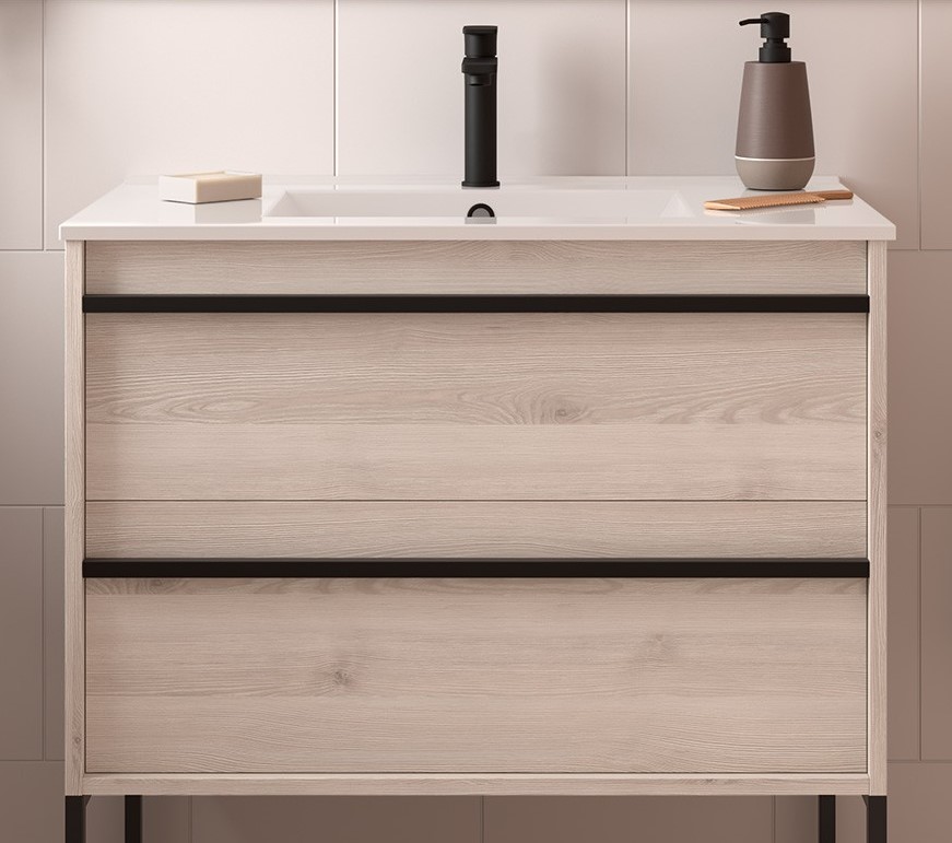 Los muebles de baño ATTILA destacan por su característico tirador negro.