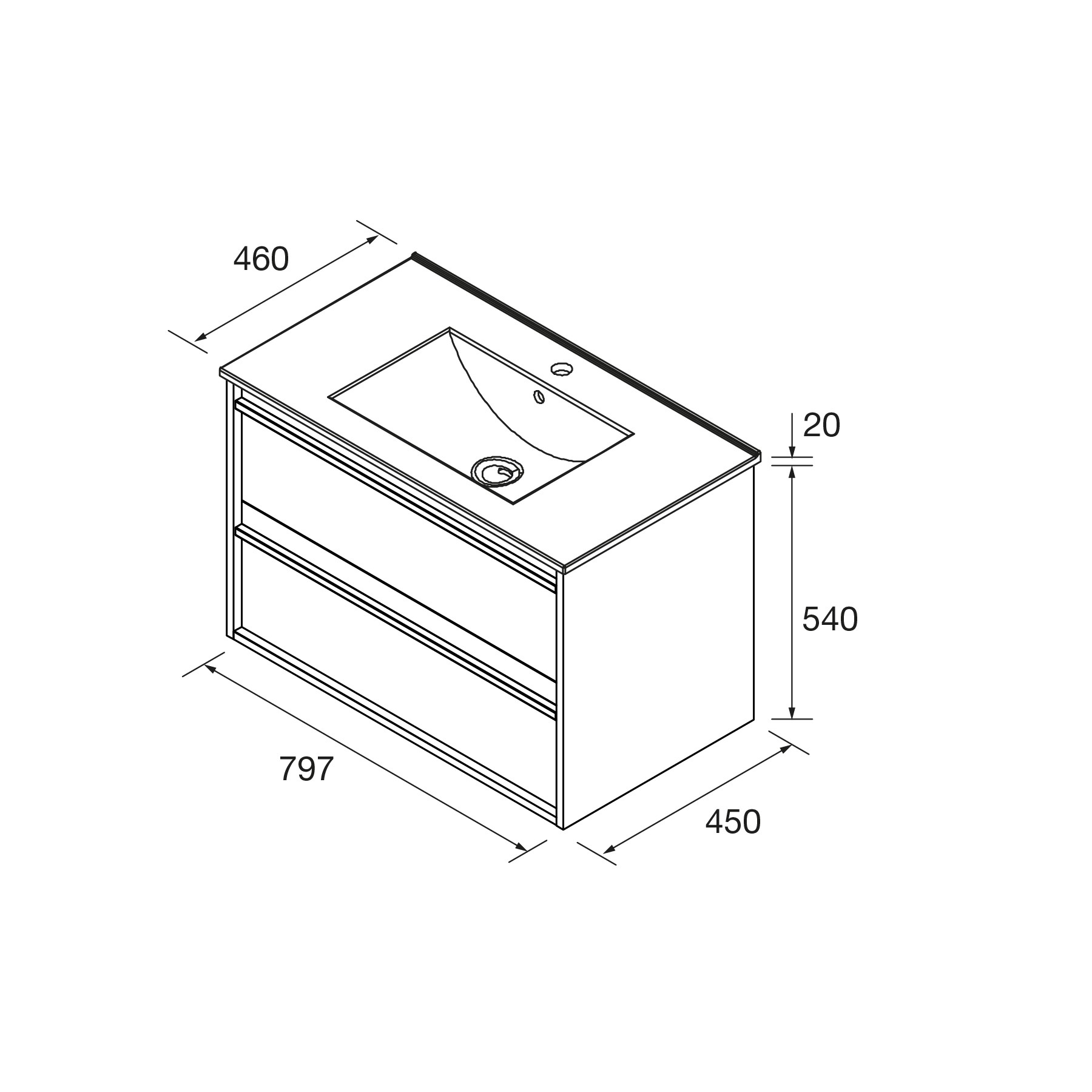 - Mueble de baño de dos cajones con cierre con freno amortiguado para un cierre siempre suave.