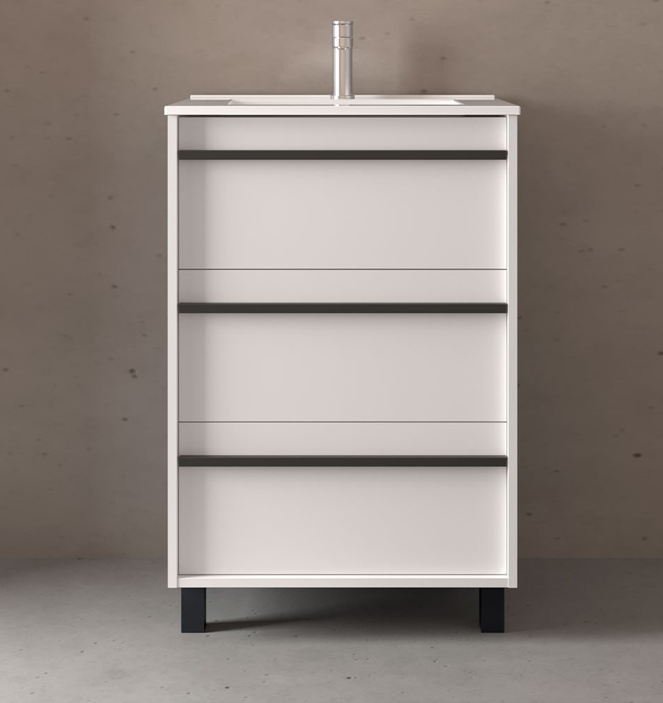 - Mueble de baño de 3 cajones a suelo con cierre con freno amortiguado para un cierre siempre suave.