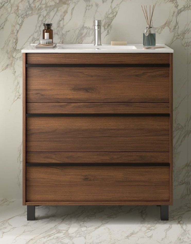- Mueble de baño de 3 cajones a suelo con cierre con freno amortiguado para un cierre siempre suave.