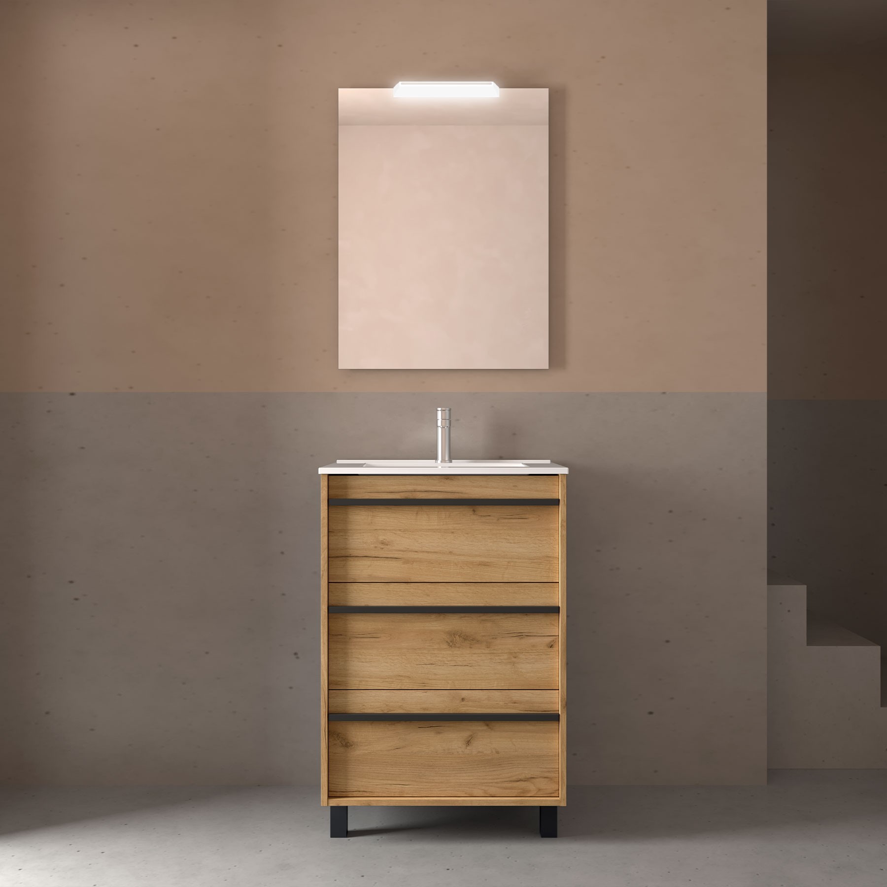SALGAR ATTILA BAJO 3C + ENCIMERA PORCELANA A SUELO ROBLE AFRICA 60