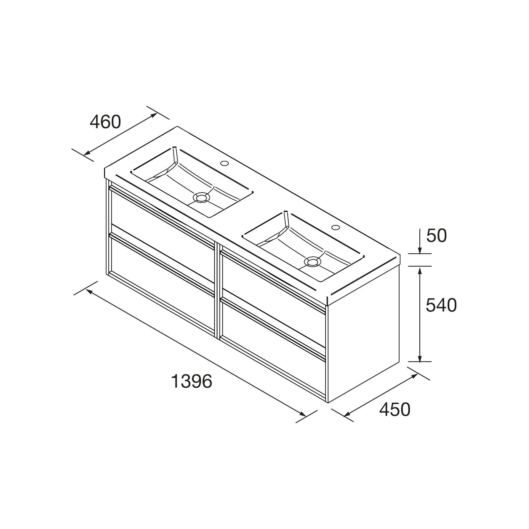 - Lavabo de 2 senos fabricado en carga mineral.