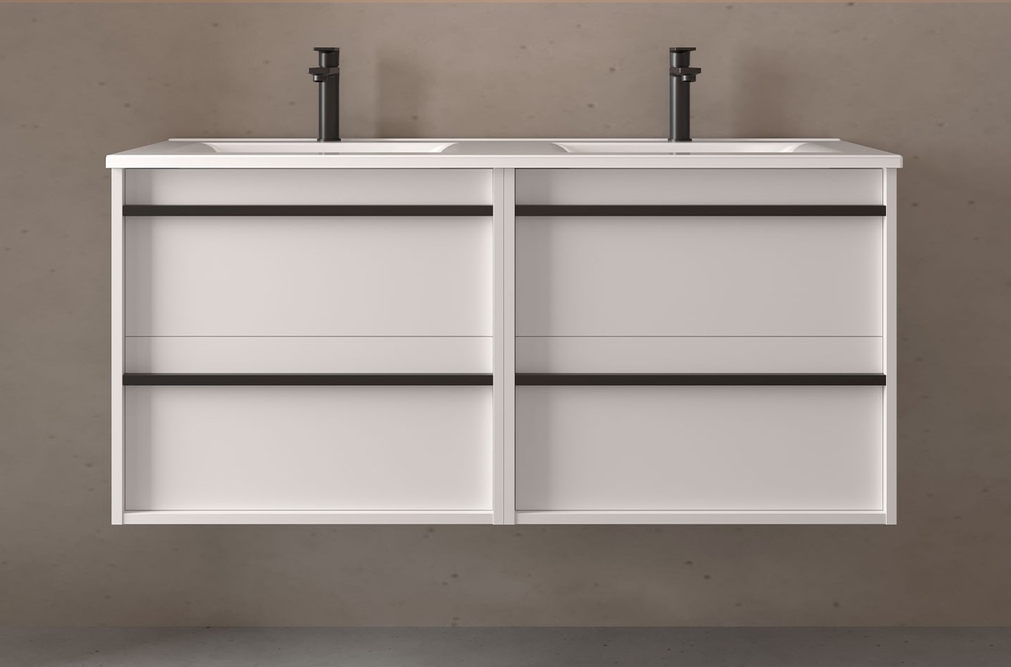 El conjunto de mueble de baño está formado por 2 muebles de baño y lavabo integrado de 2 senos.