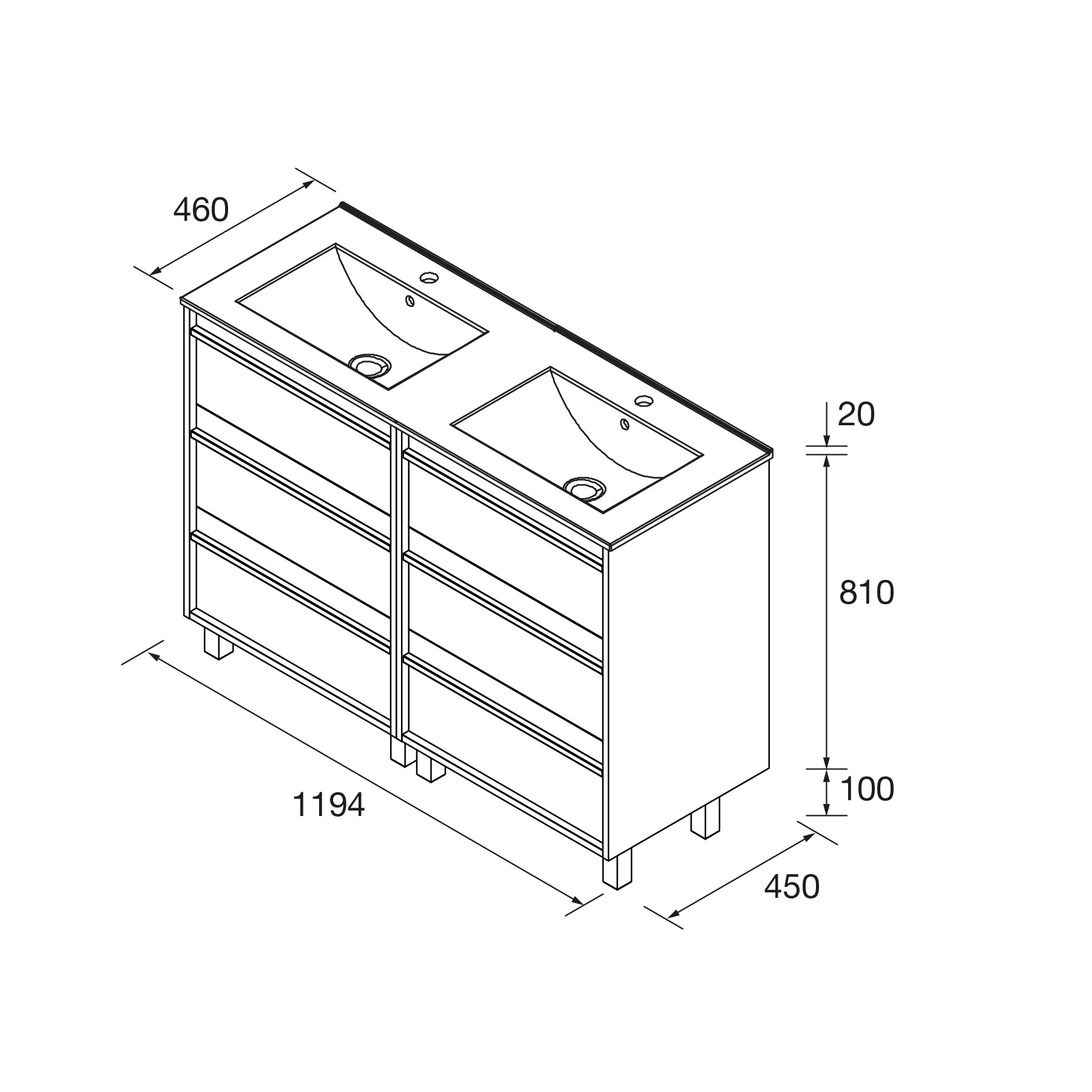 El conjunto de mueble de baño está formado por el mueble de baño y lavabo integrado de 2 senos.