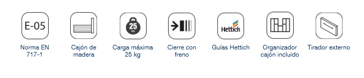 Además, incluye el organizador de cajón e incorpora guías HETTICH con cierre amortiguado.