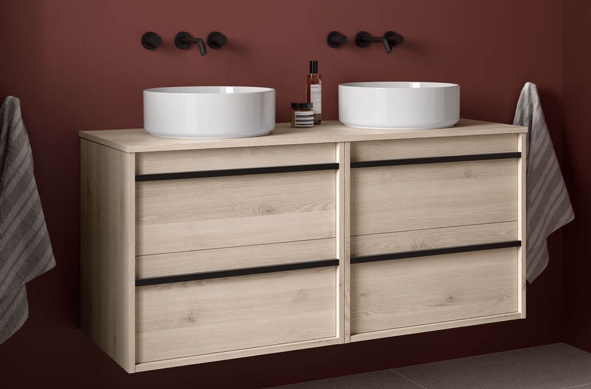 Los muebles de baño ATTILA destacan por su característico tirador negro.