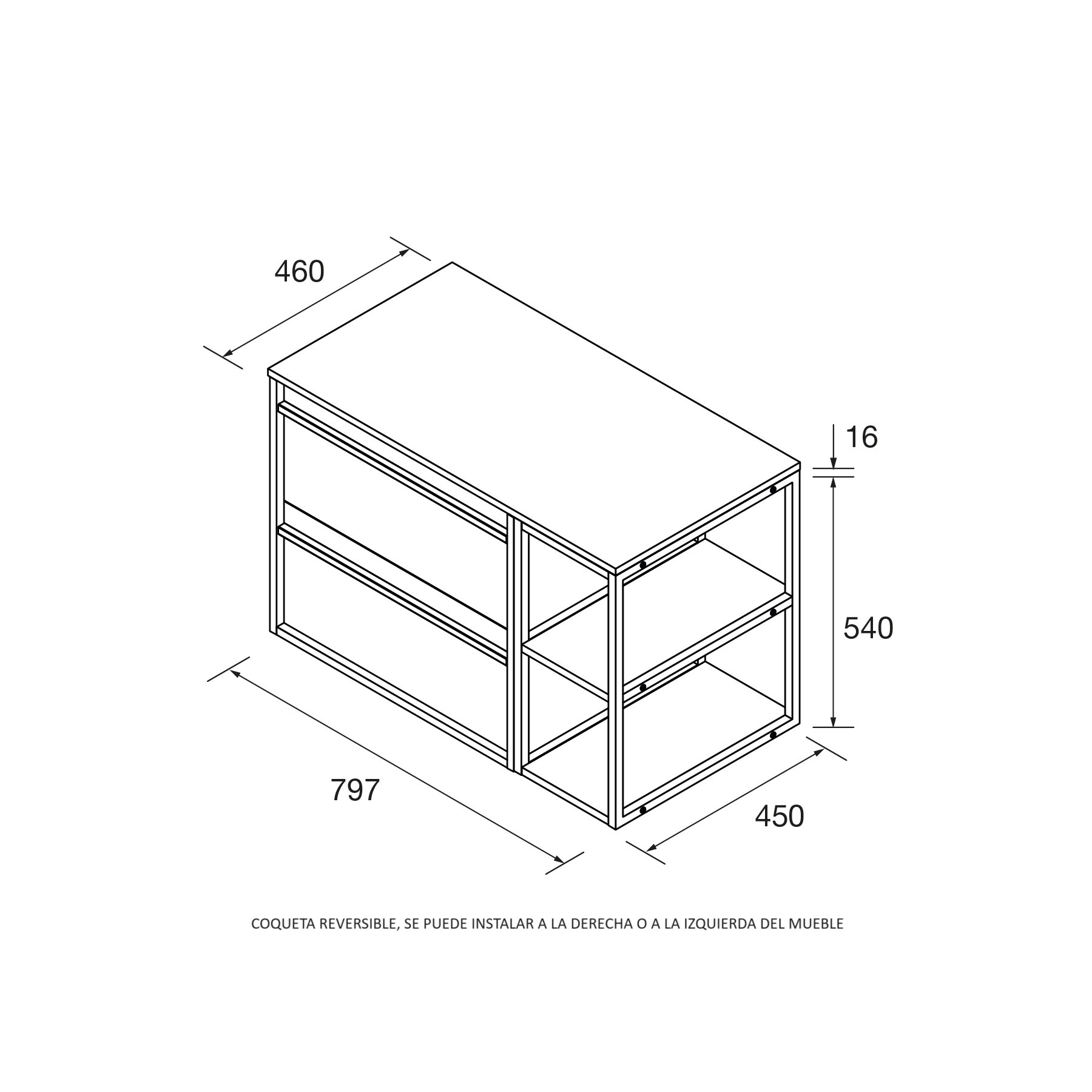 - Este conjunto es reversible, se puede poner la coqueta a la izquierda o a la derecha.