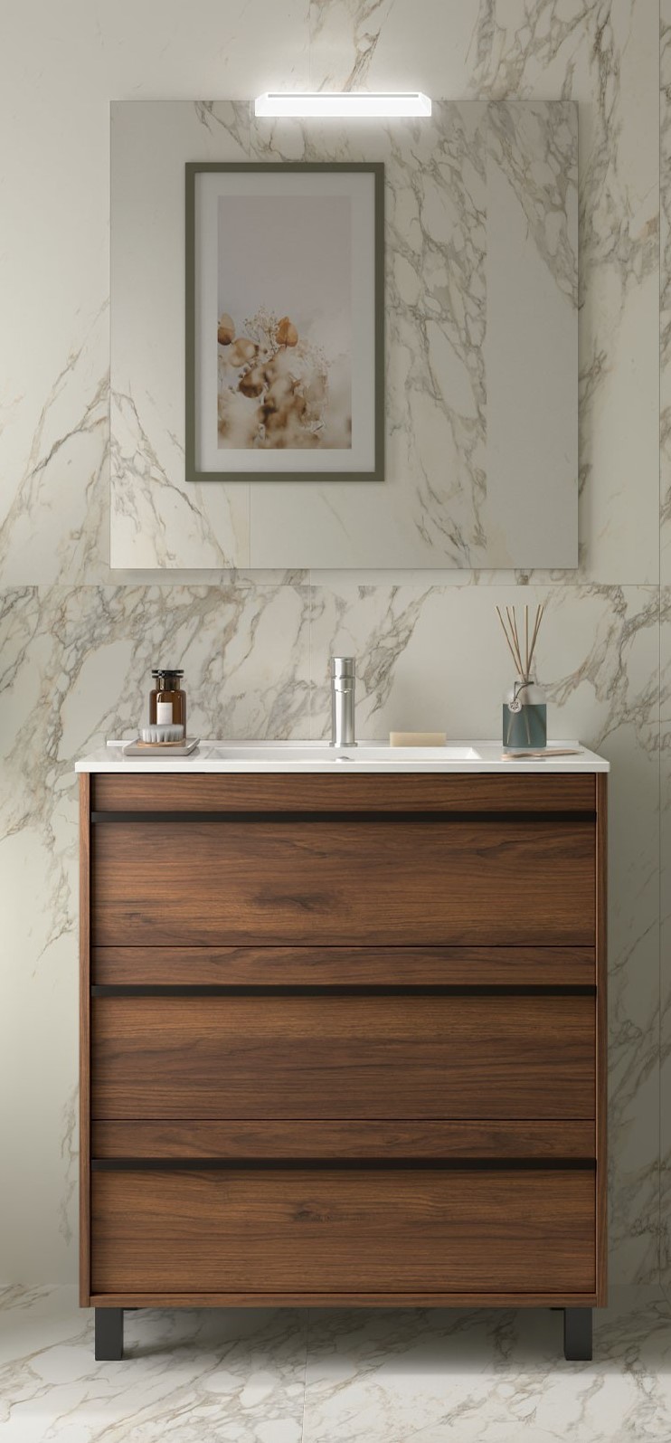 - Mueble de baño de 3 cajones a suelo con cierre con freno amortiguado para un cierre siempre suave.
