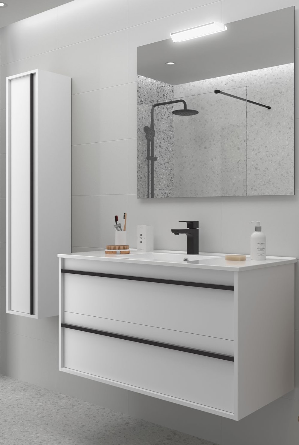 Los muebles de baño ATTILA destacan por su característico tirador negro.