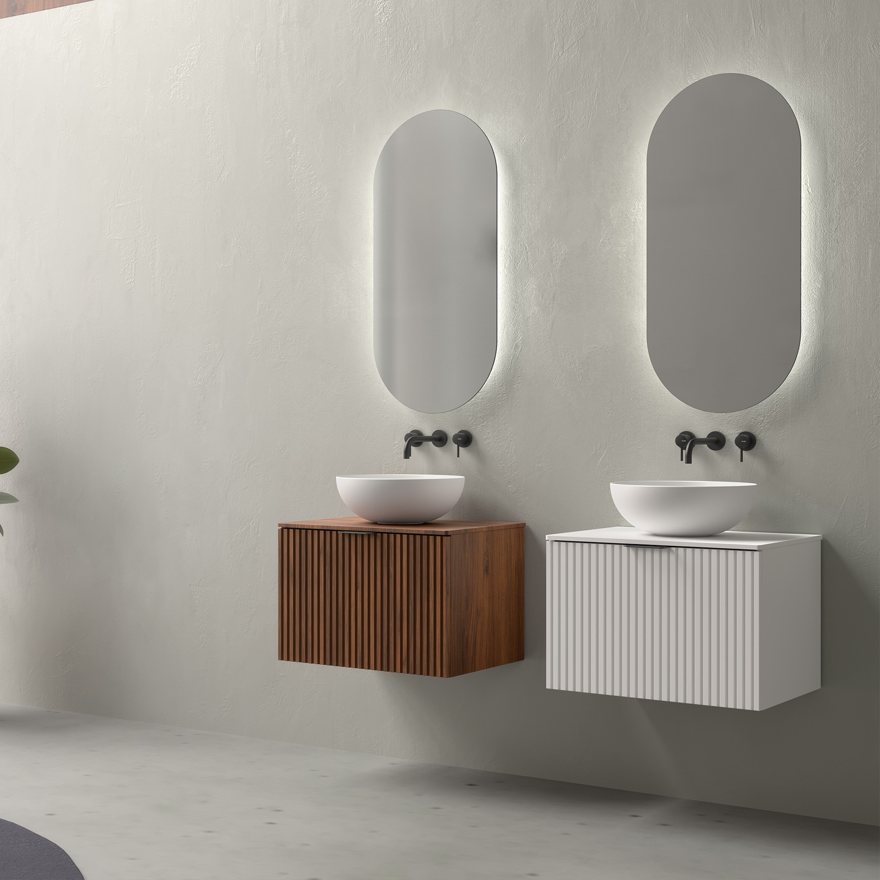iva incl.Este mueble de baño con sus frentes con tecnología 3D, con ranuras verticales, aportan un toque de diseño y personalidad a tu baño.