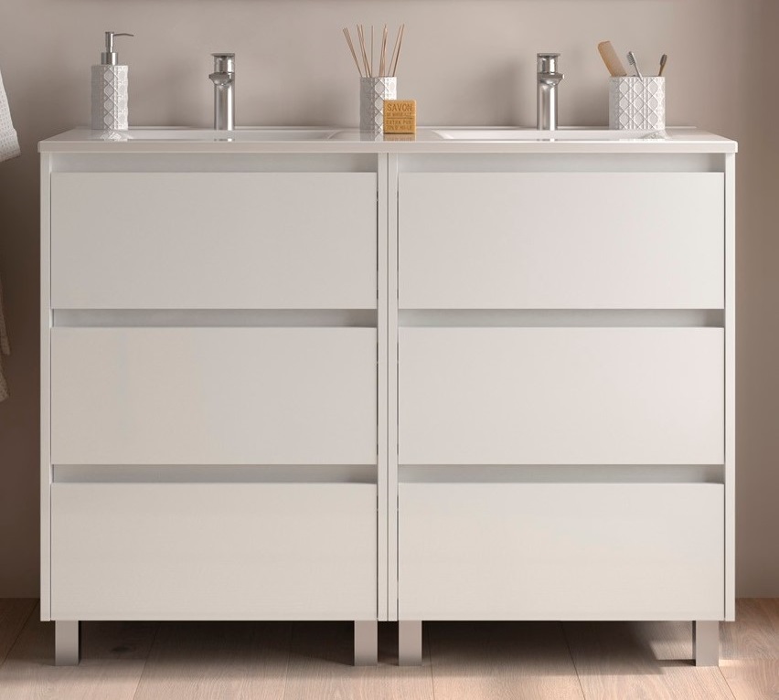 SALGAR NOJA BAJO DOBLE 3C + ENCIMERA PORCELANA 2S BLANCO BRILLO 120 CM