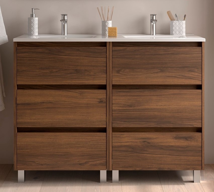 SALGAR NOJA BAJO DOBLE 3C + ENCIMERA PORCELANA 2S NOGAL MAYA 120 CM