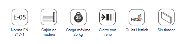 Los cajones de la serie poseen cierre amortiguado y guías Hettich garantizando la suavidad de funcionamiento y calidad.
