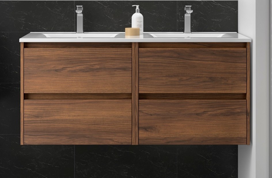 SALGAR NOJA BAJO DOBLE + ENCIMERA PORCELANA 2S NOGAL MAYA 120 CM