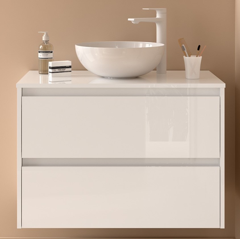 - Mueble de baño acabado blanco brillo.