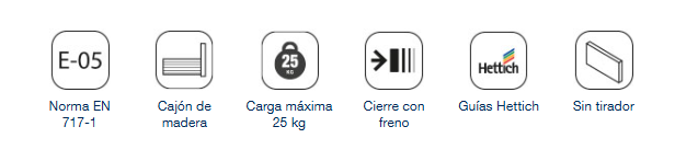 Los cajones de la serie poseen cierre amortiguado y guías Hettich garantizando la suavidad de funcionamiento y calidad.