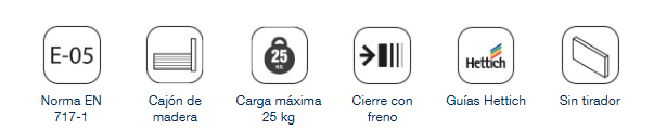 Los cajones de la serie poseen cierre amortiguado y guías Hettich garantizando la suavidad de funcionamiento y calidad.