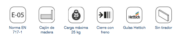 Los cajones de la serie poseen cierre amortiguado y guías Hettich garantizando la suavidad de funcionamiento y calidad.