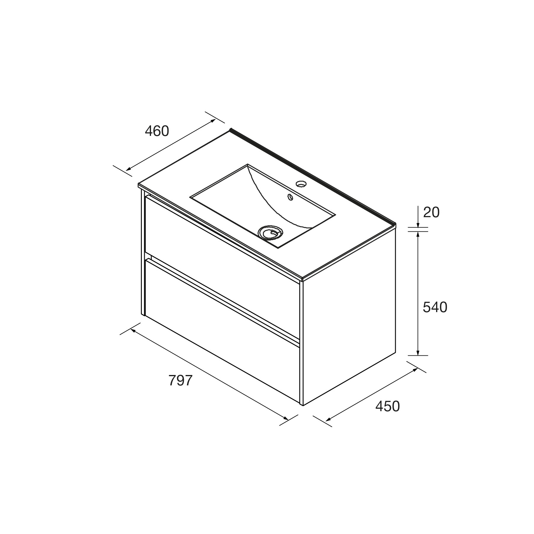 No incluye espejo, aplique, grifería, desagüe ni otros accesorios.