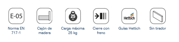 Los cajones de la serie poseen cierre amortiguado y guías Hettich garantizando la suavidad de funcionamiento y calidad.