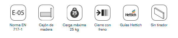 Los cajones de la serie poseen cierre amortiguado y guías Hettich garantizando la suavidad de funcionamiento y calidad.