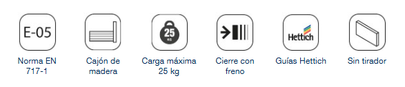 Los cajones de la serie poseen cierre amortiguado y guías Hettich garantizando la suavidad de funcionamiento y calidad.