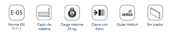 Los cajones de la serie poseen cierre amortiguado y guías Hettich garantizando la suavidad de funcionamiento y calidad.