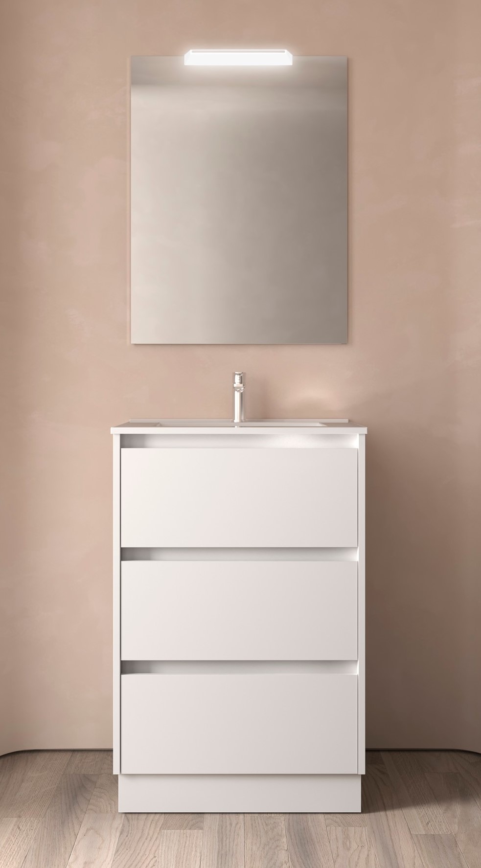 - Mueble de baño acabado blanco mate.