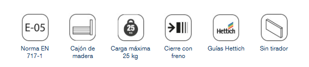 Los cajones de la serie poseen cierre amortiguado y guías Hettich garantizando la suavidad de funcionamiento y calidad.