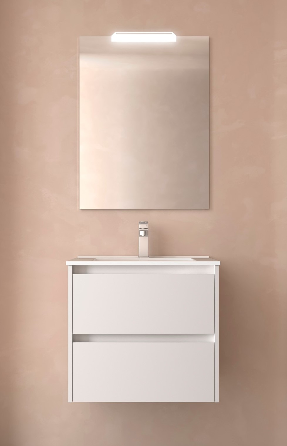 - Mueble de baño acabado blanco mate.