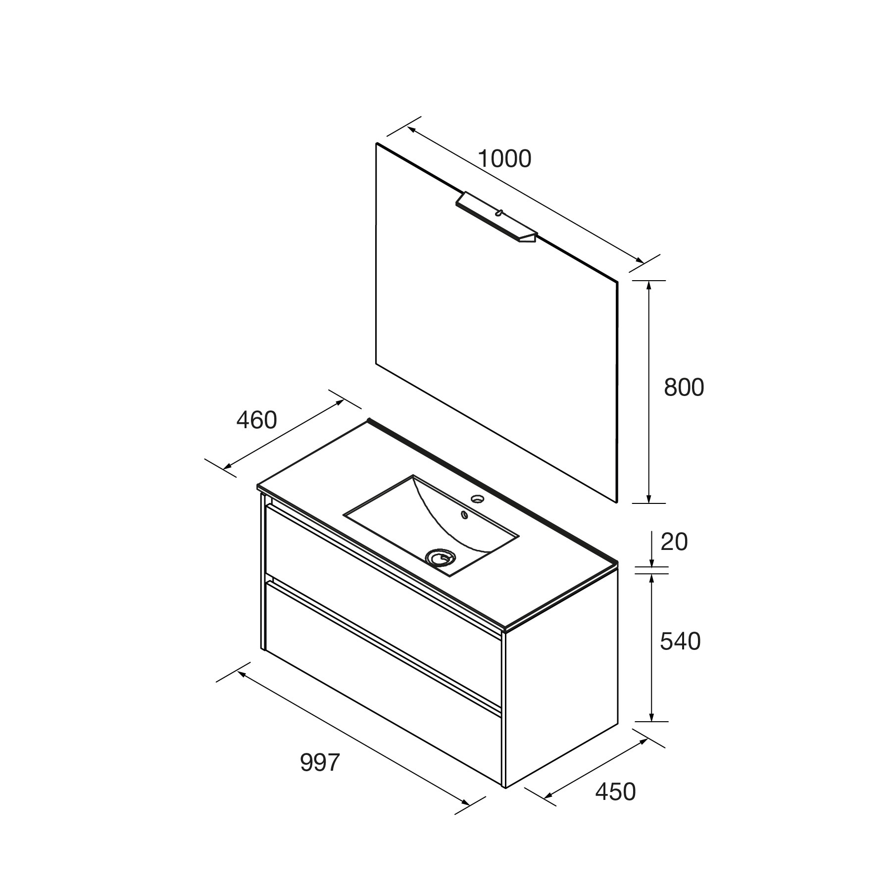 - Dos cajones 100 cm.