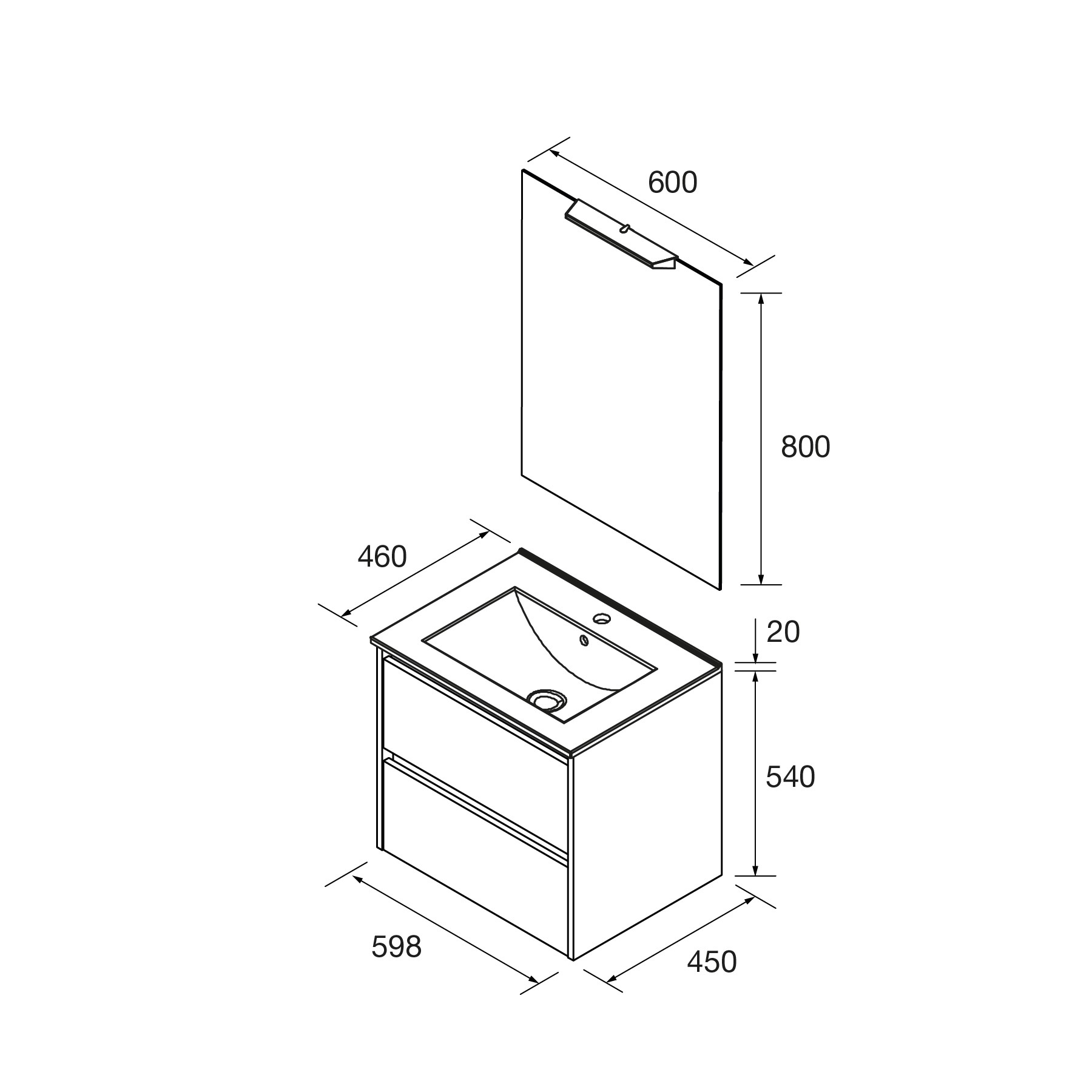 - Dos cajones 60 cm.